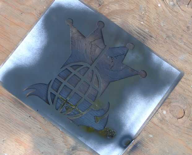 ok ahora encontrar un lugar para pintar, ahora colocar la plantilla y aerosol lejos... entonces espere hasta que se seca. algunos artista utilice adhesivo para reducir la plantilla en las superficies. pero eso no es nessisary.