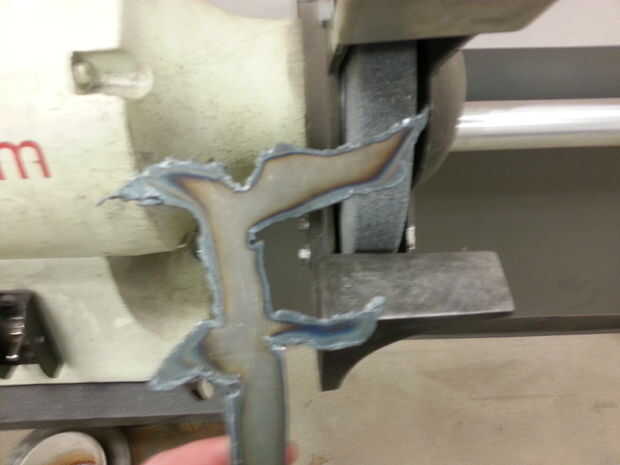 Utilizando una esmeriladora de banco tomó de todas las rebabas de la cortadora de plasma. Hay un montón de escoria de izquierda de la pieza por lo que es una buena idea para suavizar todo.