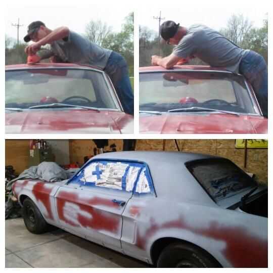 Usando una lijadora orbital eléctrica que lijar las asperezas luego les cubrió con un spray en el primer auto que pequeñas imperfecciones.