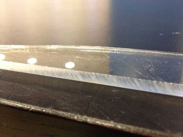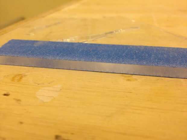 Este pedazo de plástico no tiene película protectora. Es importante mantener su plástico protegido tan a menudo como sea posible para evitar ralladuras. Usé cinta de pintor azul para volver a enmascarar las áreas no protegidas para evitar que se raye en el futuro medidas