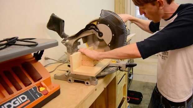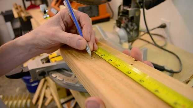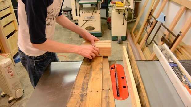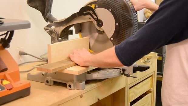 Tuve que hacer nuevos soportes verticales por corte tres piezas de pino 2 × 4 en 9 pulgadas. Para recrear el look de corredores típicos de plataforma mide en 1 1/2 de los lados y tres pulgadas de la parte superior y corte las muescas con la sierra. A continuación, resta el ancho de los tres 2 × 4 de uno de los listones y luego cortar dos piezas iguales para ambos estantes que las botellas de vino.