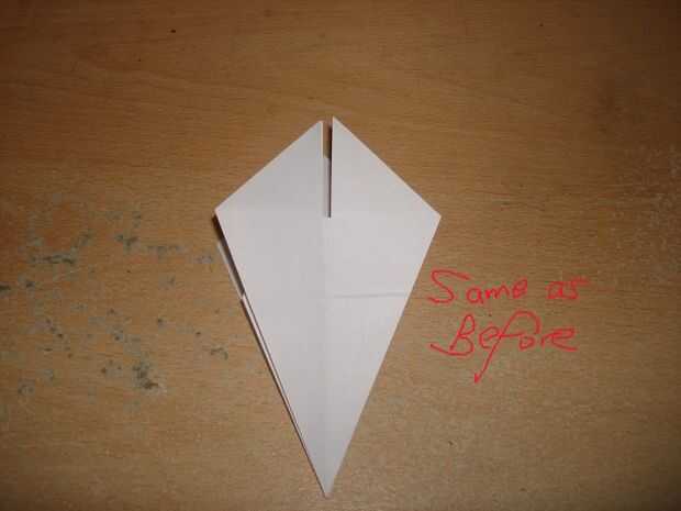 -Ahora otra vez la solapa grande delantera izquierda derecha y la aleta derecha vuelta grande a la izquierda que significa que terminará con algo como la última foto aquí