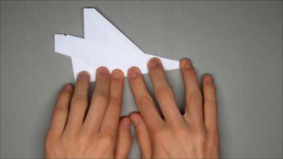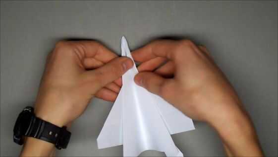 Dé vuelta el plano y verá dos pestañas pequeñas en ambos lados de la nariz. Debe ser doblados hacia adentro lo más lejos posible. Valle de pliegue en el pliegue de centro y coloque el plano como se muestra en la última foto.