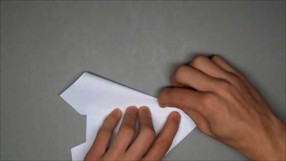 Mover ambas alas hasta la parte superior, luego gire el papel entero 180 grados. Repita el paso anterior en este lado.