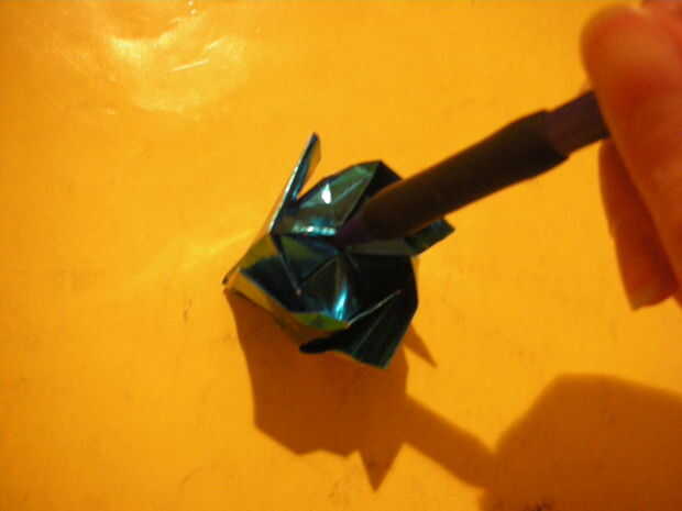 Este es mi parte favorita! Fácilmente puede dejar su rosa en esta etapa, pero si quieres hacerlo extra bastante, tomar un lápiz u otro instrumento aburrido (es decir, un bolígrafo, un palillo u otro instrumento largo, ligeramente redonda y delgado) y esencialmente "primicia" en el centro de la rosa, abriendo el interior. Deseo, una vez más, tenía el video, pero acabo de hacer un pequeño remolino hasta que salga una pequeña inmersión en la rosa. Asegúrese de girar en círculos para suavizar el dip.