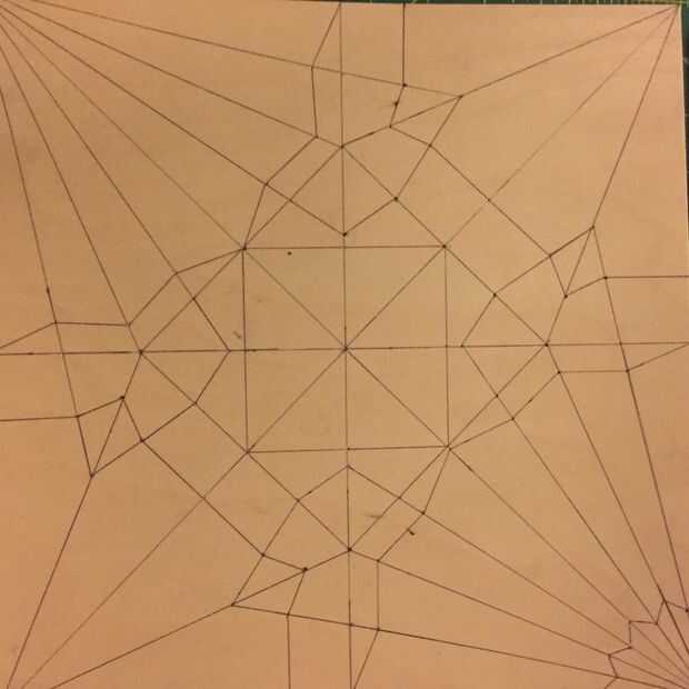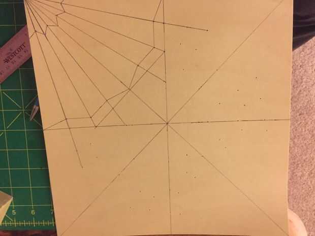 , he añadido un par de cosas, como una diagonal completo a través de las alas, así como un cuadrado completo en el centro. Puesto que la madera no tiene la misma flexibilidad como el papel (y una vez que me muevo lejos de cartulina, tendrá muy poca flexibilidad) quería asegurarse de que todavía podría hacer la forma tridimensional en el centro.