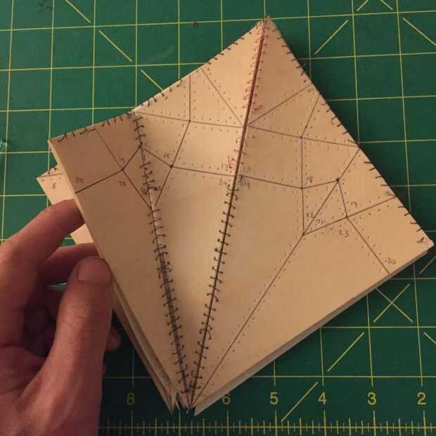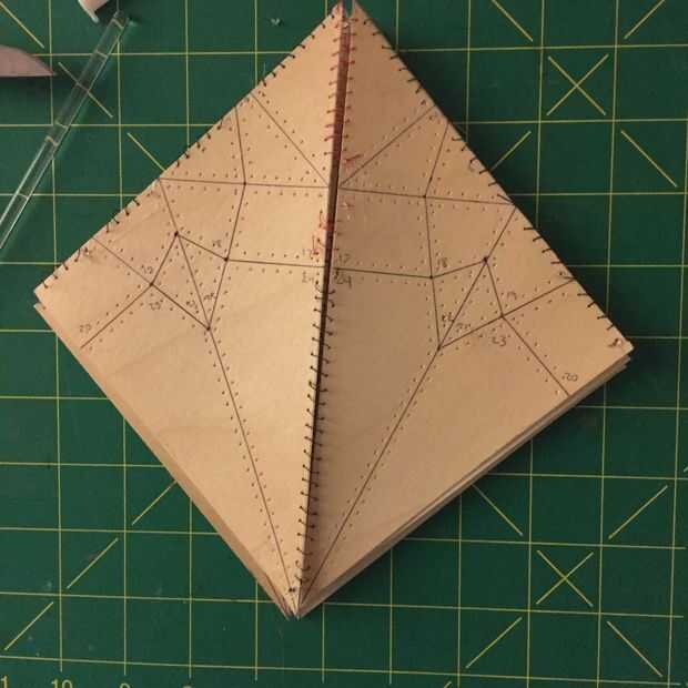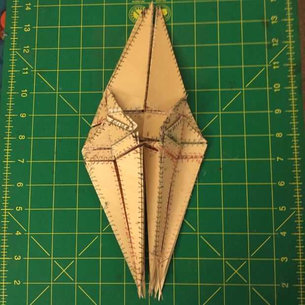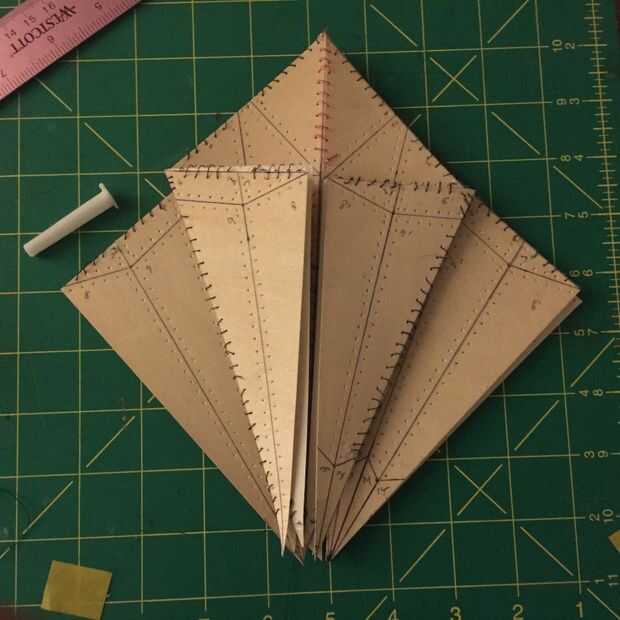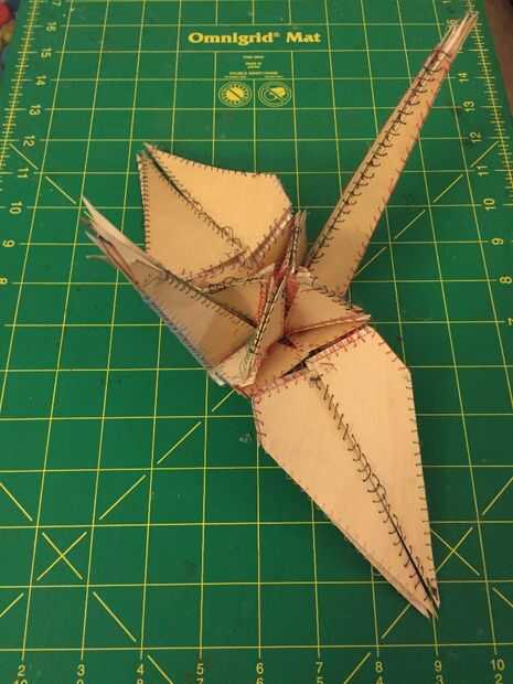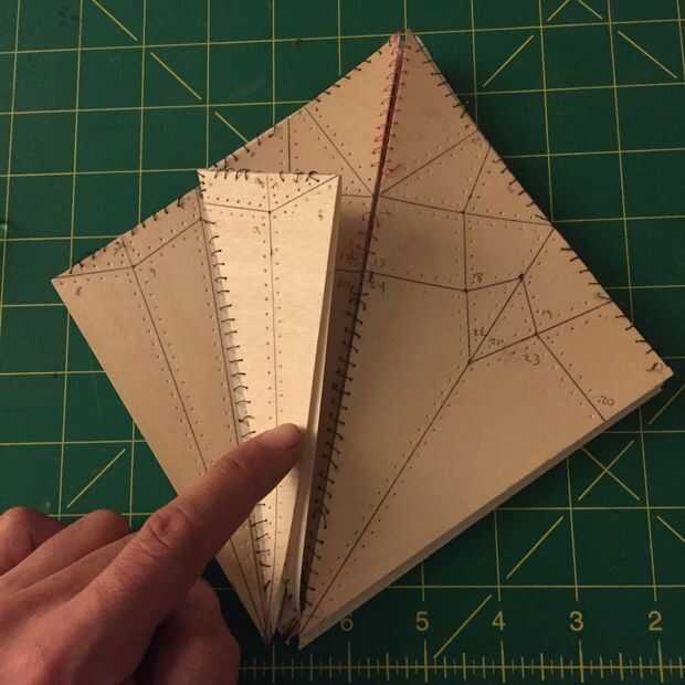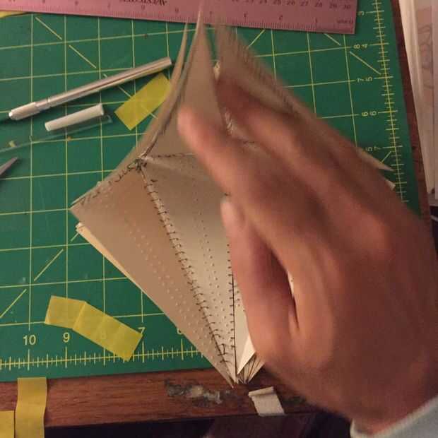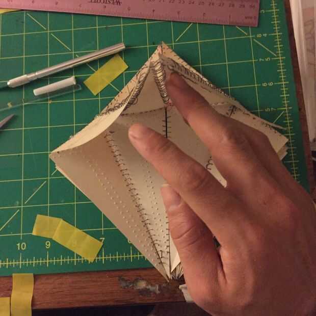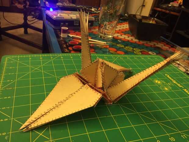 Como se avanzó, empecé a doblar la grúa. Cuando llegué al final, me di cuenta de una de las limitaciones de la madera: el cuerpo no podría expandirse en un espacio de relleno de volumen y en su lugar quedó estancado en una conformación arrugada.