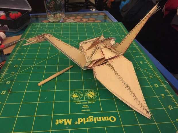 Corté un cuadrado de centro adicional, final en la cartulina, junto con los segmentos de la cabeza. Todo doblado juntos muy bien, para un primer borrador. En el futuro, podremos ajustar el cordón para que la estructura quede bien y bonito.