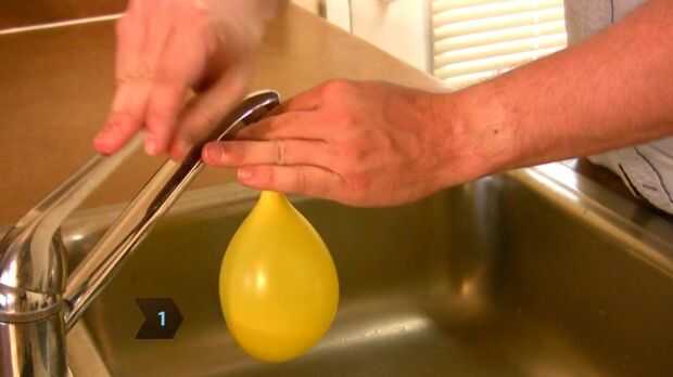Llene el globo hasta la mitad con agua del grifo. Retire la llave y llenar la otra mitad con el aire. Ate.
