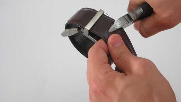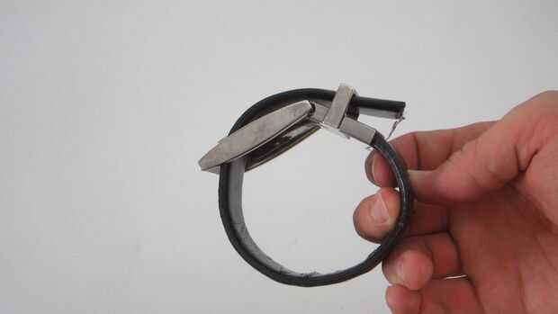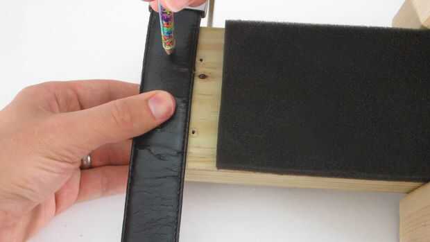 Primero añadí un agujero para la correa de la correa de modo que podría apretarse alrededor de mi brazo. Libremente Envuelva la correa alrededor de su brazo y ver que alinee la barra (o puntas). Use un punzón un clavo o un taladro de broca para hacer un nuevo agujero en esta ubicación. Entonces unas pocas pulgadas más allá de este punto, cortar el resto de la banda.