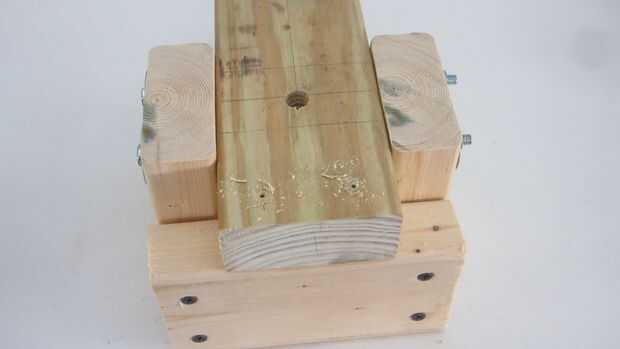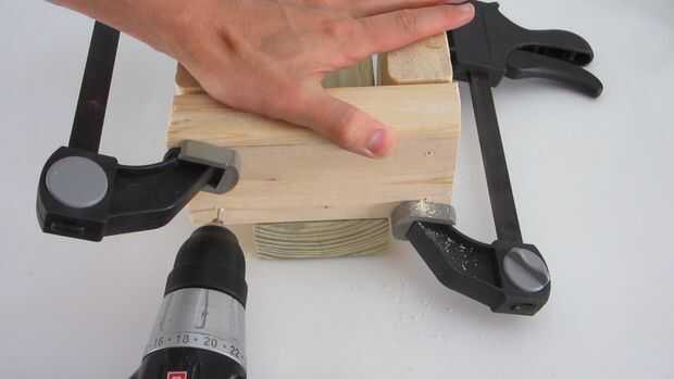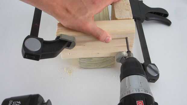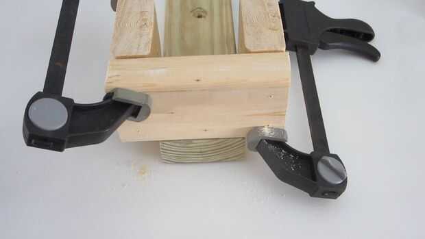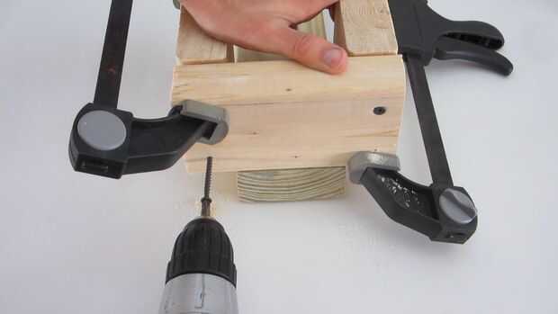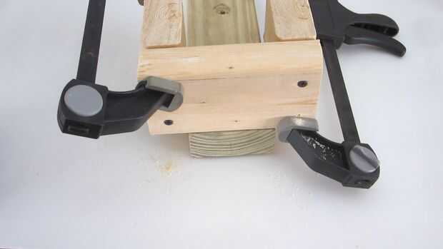 Primero tomé el tablero de 6 1/2" y taladrar agujeros de 3/32" en cada esquina. Estos agujeros deben ser aproximadamente 3/4" de cada lado. Entonces sujeta esta placa al frente de los dos tableros de 5". Los agujeros en el tablero de 6 1/2" se utilizará como plantilla para taladrar los agujeros guía en las tablas 5". Redrill cada agujero y perfore la placa 5" medida permitirá que la broca. Con las placas todavía afianzada con abrazadera en lugar de tornillo un tornillo para madera en cada orificio.