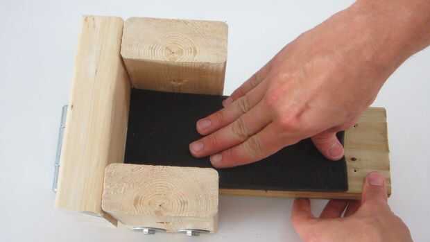 Para evitar hematomas y arañazos de mi brazo, he añadido una pequeña esponja en el interior del guantelete. Yo solo corte una tira de espuma que fue 3 1/2" de ancho y pegado a la parte inferior de la Junta de 11 1/4". Asegúrese de utilizar un pegamento que no daña la espuma.