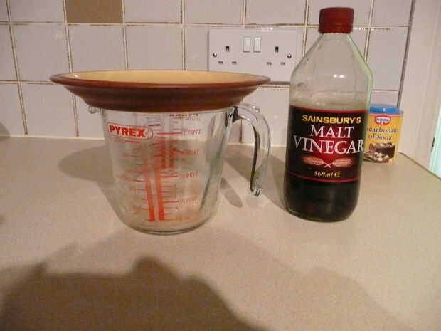 Vierta unas 5 cucharadas de vinagre en la jarra y coloque una tapa en la parte superior.