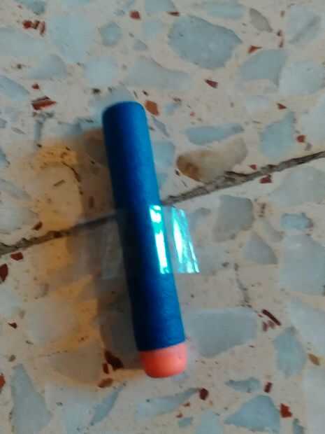 se necesita un1 pistola de dardos Nerf (cualquier tipo)2. pluma (cualquiera)3 cinta pato4. Nerf dart (cualquiera)5. un bolígrafoPaso 1: Pluma y Dart Tomar el dart y jale la parte superior.Ahora después de que pato la cinta tiempo de alrededor de 5.Ah