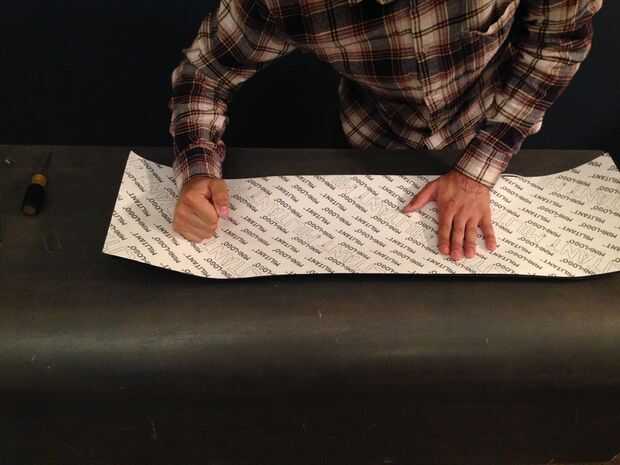 Ponga el papel pelado en la parte superior el griptape. Hacer un puño y empuje hacia afuera del centro varias veces. Propósito de este paso es para asegurarse de que el griptape se coloca plana en la parte superior de la cubierta.