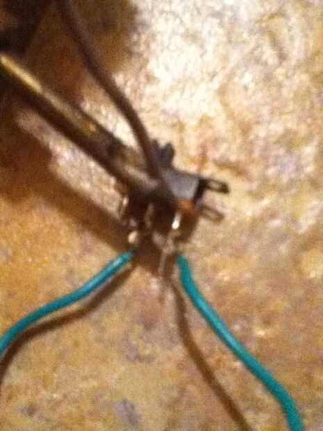 Soldadura el swich a wires.BE cuidado no quiero que se queman! después de que Enrolle cinta aislante o pegamento caliente para mantener los cables en su lugar.