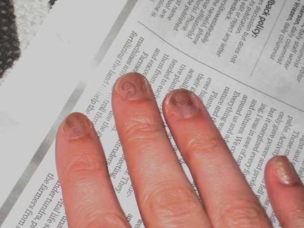 · Esto es cierto para los dedos también, abstenerse de tocar las uñas hasta después de que se haya secado la capa clara o los dedos quitarán la tinta.
