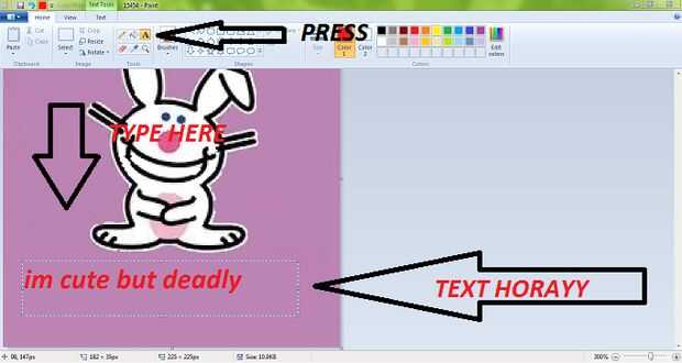 usar pintura para agregar texto a él presionando que pequeño botón es decir === > A < ===