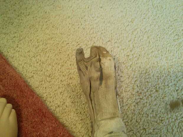 Sacar el calcetín. LIMPIAR!! Tire esa cosa que usted reventadas el pie.
