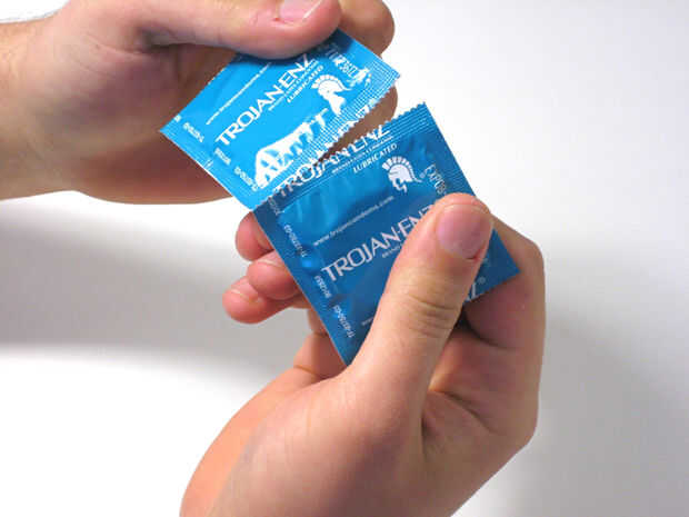 Una vez se arrancó la tira, saque el preservativo de la envoltura y proceder.