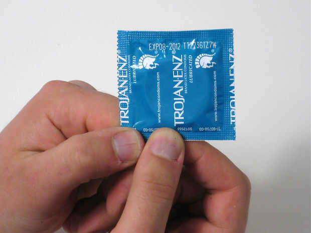 Revisa la fecha de caducidad del preservativo y asegúrate de que el condón sigue siendo bueno para el uso. El condón en la foto a continuación fue adquirido en el invierno de 2008, y como se puede ver, no vencen hasta agosto de 2012 - muy buena vida útil.