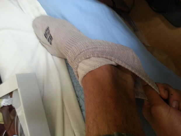Finalmente, agarrar la parte delantera del calcetín, luego tire hacia arriba y ha puesto