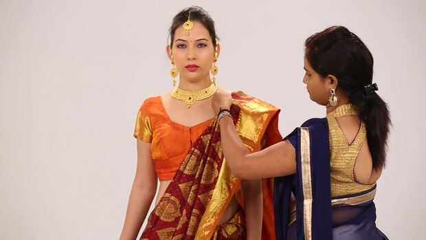 Cómo ponerse un sari en 2 minutos – estilo indio sari de la seda para la boda (2 / 3 paso)