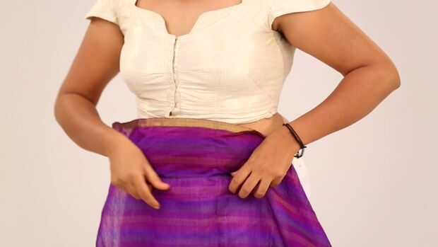 Cómo ponerse un sari paso a paso en 2 minutos perfectamente y cuidadosamente a Look Slim - Sari Coorg estilo drapeado (1 / 3 paso)