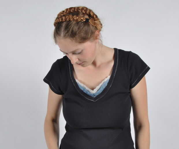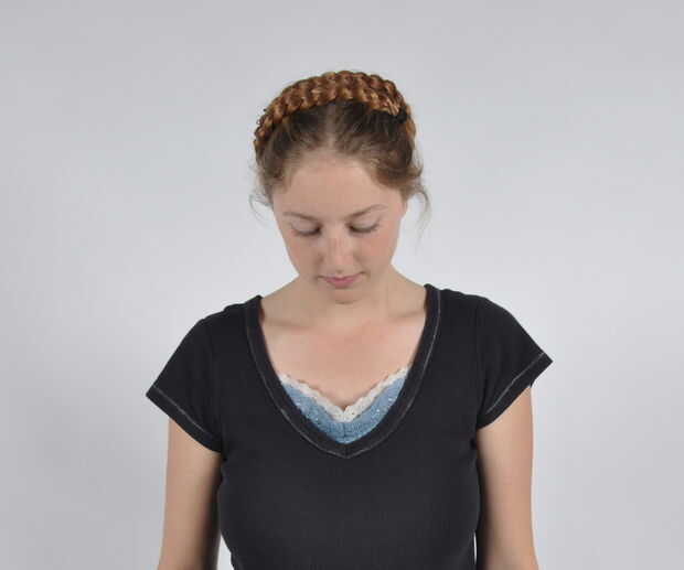 Aseguró la trenza con horquillas alrededor de la frente. La dejé más flojo en la parte posterior, pero se puede horquilla eso si usted quiere demasiado.