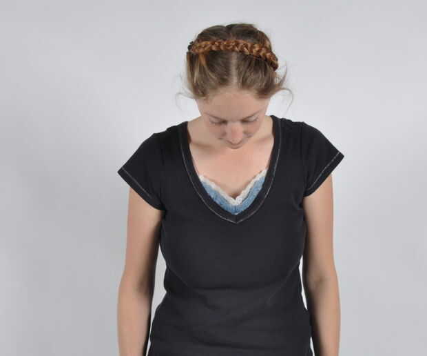Tomo la primera trenza y ponerla debajo de la trenza enfrente y hacia arriba y alrededor de la parte frontal de mi cabeza. Originalmente asegura la trenza en mi corona, pero esta vez se aseguró un par de pulgadas de la corona de mi cabeza. Cuando estaba en la parte frontal de mi cabeza parecía atrapar y sujetar la peluca a mejor, pero siento que era más sensible. Usted puede poner las trenzas donde quieras.