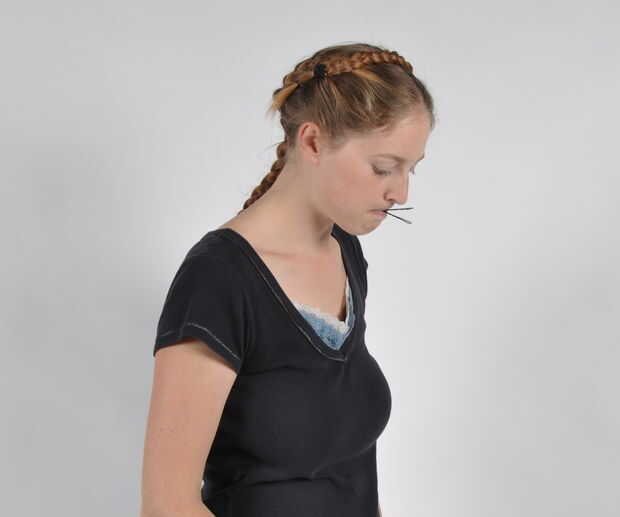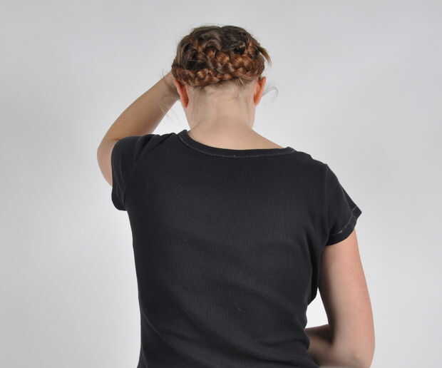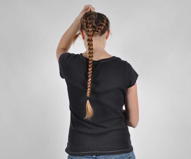 Después de asegurar la primera trenza, tomó la siguiente trenza y cruza bajo la trenza enfrente y había traído alrededor de la parte delantera de la trenza anterior. Que, una vez más, asegurar con horquillas.
