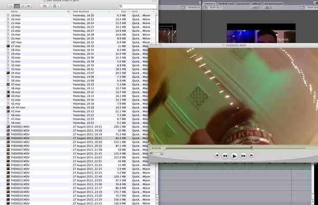 La utilización del software de edición utiliza Quick time para dividir las imágenes de consumo en las personas individuales, hice esto para reducir la longitud del vídeo final debido a la cantidad de personas estaban pasando la botella o llevar la botella o solo hablar de lo que era.