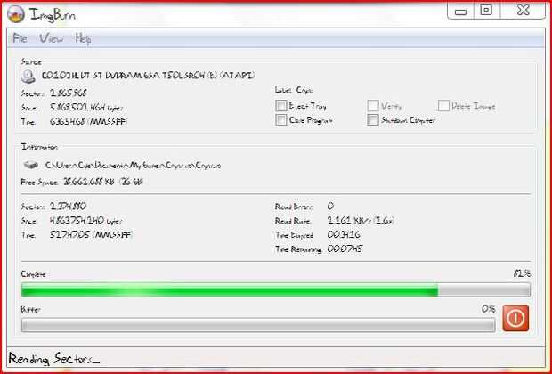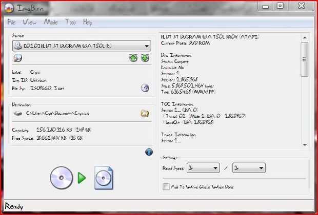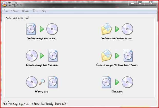 ok. lo quiero hacer ahora es asegurarse de que tener el disco que desea hace un archivo iso en la unidad de hardware real. abre imgburn y haga clic en crear archivo de imagen de disco. Nota: también puede crear un archivo iso desde una unidad virtual montada, pero no hay ninguna razón. abre imgburn y haz clic donde dice crear archivo de imagen de disco. ahora es tu oportunidad para cambiar la configuración. Haga clic en el disco de archivo de imagen en la parte inferior para empezar.