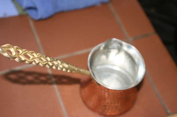 • Un Turco Ibrik/Cezve- http://www.natashascafe.com/html/ibrik.html $18.00 - usted puede encontrar en toda la web. El ibrik es la principal herramienta que se necesita para preparar el café turco. También se llama un cezve.