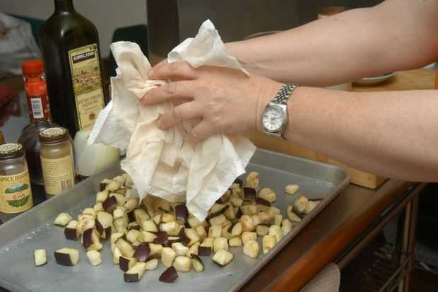 Paso 5: Escurrir agua (y sal) de berenjena