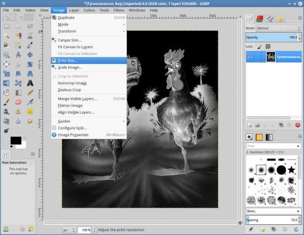 El siguiente paso es establecer el tamaño físico de la nuestra imagen. Ahora, nuestra imagen se mide en "pixeles", que no se correlacionan directamente con dimensiones reales. Usted tendrá que decidir qué tamaño quieres tu imagen impresa que y configurar el software con los parámetros.