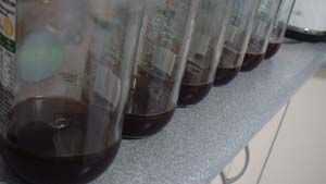 Ahora para 1 litros (25 galones / 1000ml) frasco con 4 cdas granos te va a necesitar 4 Cucharaditas de azúcar.