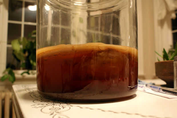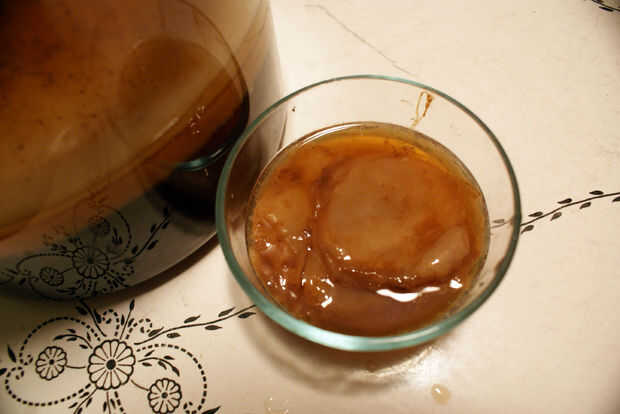 Kombucha es una bebida de té fermentado popular en Rusia, China y otros lugares.Las formas de la cultura una piel correosa llamada a la "madre" que flota en la parte superior.Episodio de Instructables TV de esta semana muestra cómo se disputa la