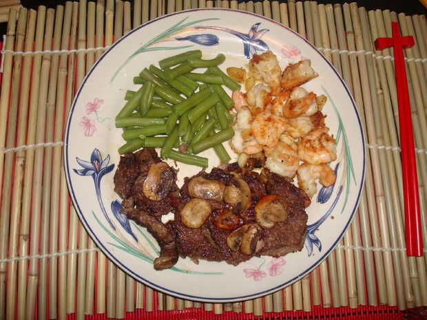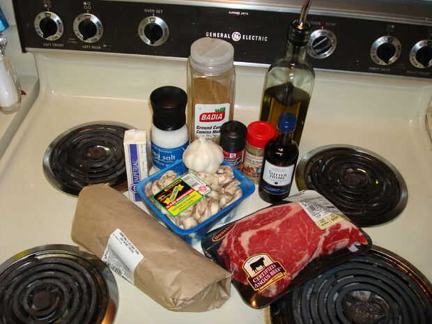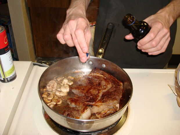 Paso 8: Regreso a su carne y añadir los champiñones picados y aproximadamente 1 cucharadita de vino merlot rojo. Cocinar a fuego lento hasta que la carne se cocina a gusto.