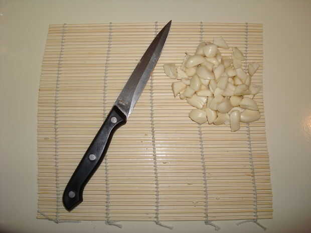 Paso 2: Primera puesta en marcha deba hacerse, empezar por peeling ang para picar el ajo en trozos grandes.