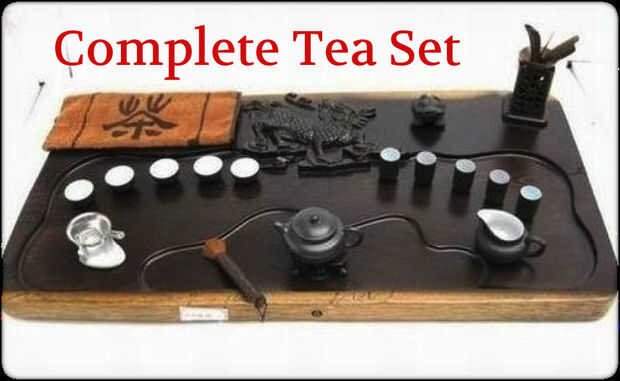 Un juego de té chino tradicional se sugiere con el fin de proporcionar una experiencia de clase y sofisticación. Muchos de estos pueden encontrarse fácilmente en línea. Un juego de té chino tradicional preparado incluye: