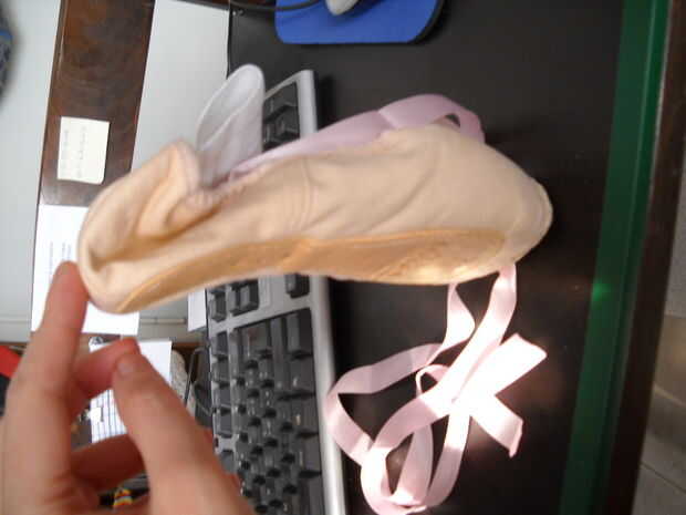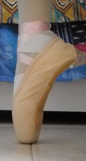 Primero rompo para ser pointe at. Puse en y voy pointe en, tratando de tirar mi talón vuelta como pude. Cuando el zapato está un poco doblado, me tire de y doblar con las manos.