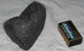 1 pad de lana de acero (se pueden utilizar como los paños S.O.S. pero no huelen bonitos cuando queman y si moja el jabón no deje que la lana de acero quemar bien. También lana de acero si se moja se oxida muy quikly, por lo que es una buena idea que lo mantenga en un plástico holgado cuando no esté en uso.)