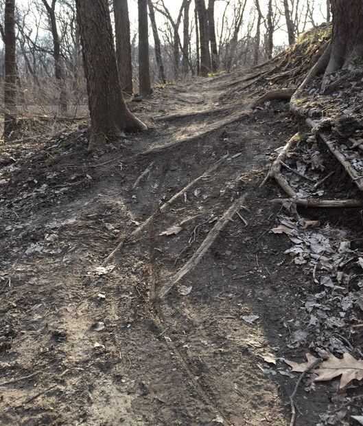 A. en las fotos arriba, árbol raíces mientras bajando una pequeña colina pueden ser difíciles de navegar, y un charco de barro puede hacer su parada de ruedas o de la diapositiva alrededor haciendo vueltas difíciles