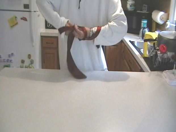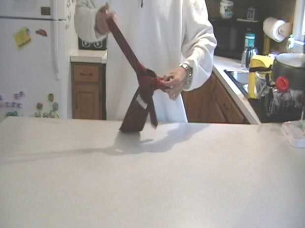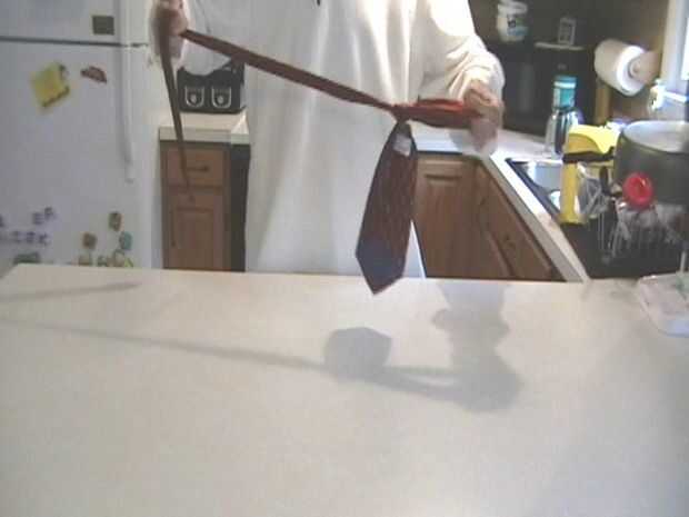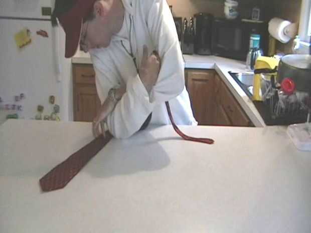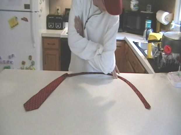 2) con los brazos cruzados, agarra cada extremo de la corbata con tus dedos índice y dedos medios como "captadores" o garras, si se quiere:)