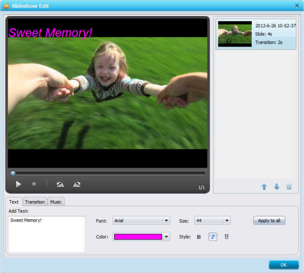 Cuando se trata de agregar las fotos en tu video, se puede colocar como su deseo, como agregar palabras, música o incluso ponerlo en boca abajo si lo desea. Añadir música si quieres haciendo clic en el botón de música y traer en y luego manipular lo que deseo.