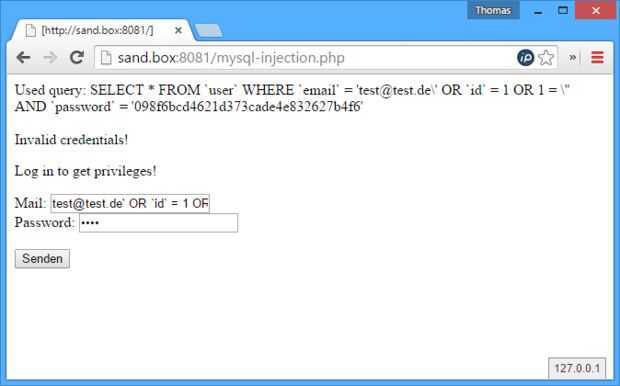 Y por supuesto, esto fallará, ya que no hay ningún correo que empareja en la base de datos.