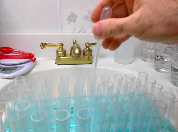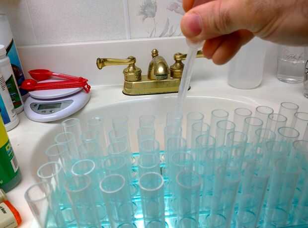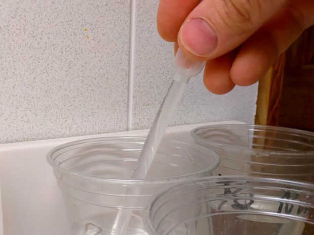• Con una pipeta limpia para cada taza, medida de 5 ml en un tubo de ensayo para cada prueba que desea realizar.