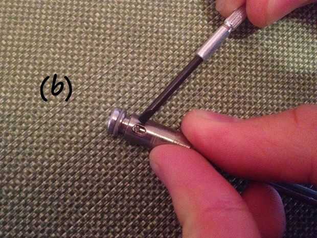 b) con un destornillador pequeño, asegúrese de que estén bien sujetos. Si ya está apretados, no intentar apretar más, ya que esto puede pelar los tornillos.
