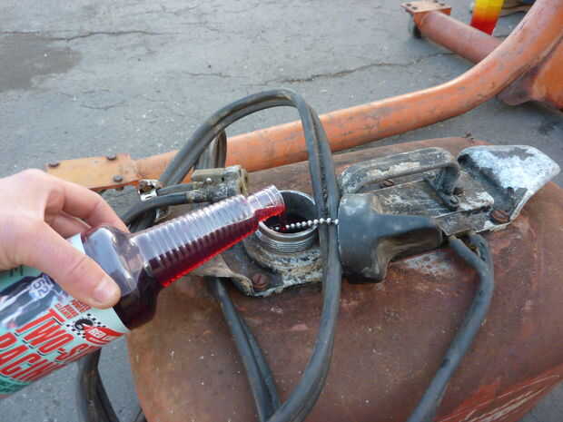 Paso 2: Limpiar hacia fuera el gas puede de mezcla de gas y aceite ya que es agua contaminada. Añadir gas fresco y la cantidad apropiada de aceite de tiempos de dos - en el poder. Marcas diferentes de aceites requieren diferentes cantidades así que leen las instrucciones cuidadosamente. Línea roja es mejor aceite en el mercado y la relación es 8ozs por galón de gas.